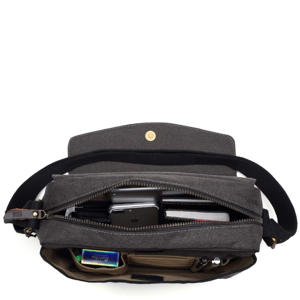 Troop London Messenger Bag has an adjustable shoulder strap with brass plated buckle to make the bag both practical and fashionable. The front and back of the bag adopts a zip for quick and easy access into your bag. The front compartment under the front flap with fastener tape closure contains a phone pouch, 3 pen loops, and 4 card slots.